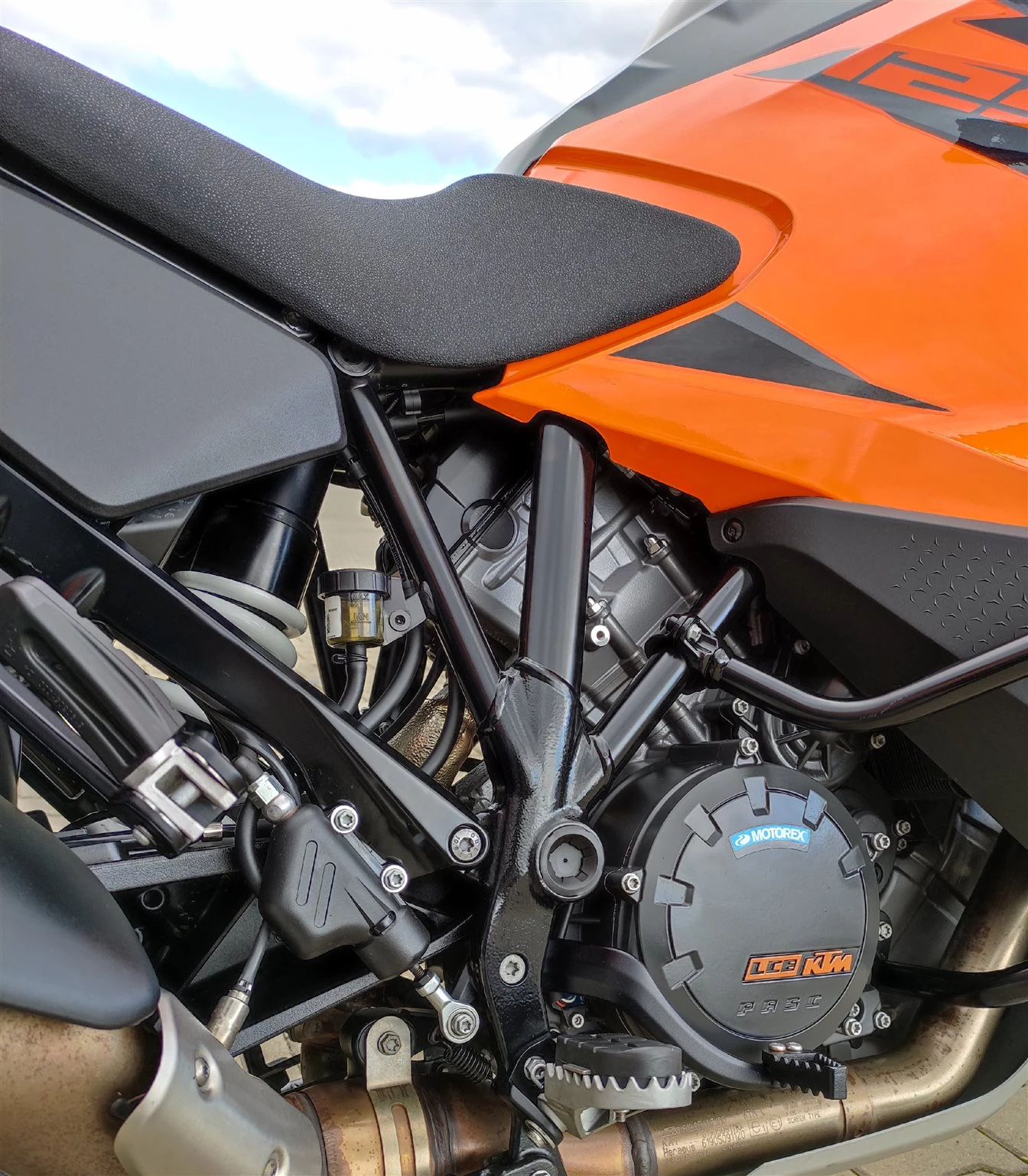 Die KTM 1290 Super Adventure S ist alles andere als ein altes Eisen. Der Euro5-Motor glänzt nach wie vor unfassbar mit seinen 160 PS und dem argen Drehmoment von 138 Newtonmeter. Die verfeinerte Elektronik sorgt für eine noch geschmeidigere Fahrbarkeit, was aufgrund des herrlich agilen Handlings in sehr viel Spaß beim Kurvenräubern mündet. Doch auch für Komfort-Freaks und all jene, die Wert auf die Reisequalitäten dieser Motorradgattung legen, hat die neue SA S einiges zu bieten. Ein nettes, serienmäßiges Feature ist der adaptive Tempomat ACC, der selbständig den Abstand zum Vordermann einhält - und richtig gut funktioniert. Empfehlenswert ist in jedem Fall der Quickshifter+ oder gleich das allumfassende TechPack - bei dem Grundpreis fallen knapp 1000 Euro Aufpreis dann auch nicht mehr so stark ins Gewicht.- sehr sportliches, aber auch kultiviertes V2-Kraftwerk