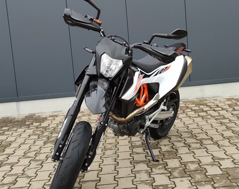 Scheckheftgepflegte KTM 690 SMC-R aus zweiter Hand inkl. kurzem Heck mit auch aktuell durchgeführtem Service.