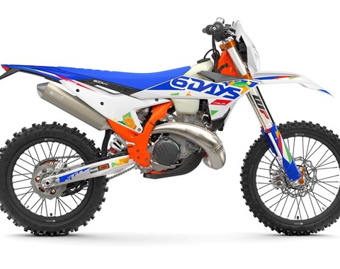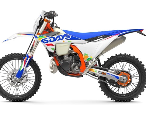 Der KTM 300 EXC 6DAYS fehlen vielleicht ein paar Buchstaben im Titel, aber sei versichert, sie ist immer noch die 100% READY TO RACE Enduro-Waffe, die sie schon immer war. Mit seinem bewährten, kugelsicheren Antriebsstrang, seiner unübertroffenen Geschwindigkeit oben und seiner traktorähnlichen Kraft im unteren Drehzahlbereich - ganz zu schweigen von seinem überragenden Fahrverhalten - ist er wieder einmal bereit, seinen Trophäenschrank um weitere glänzende Silberlinge zu erweitern. Zu den spezifischen Teilen für die KTM 300 EXC 6DAYS gehören: