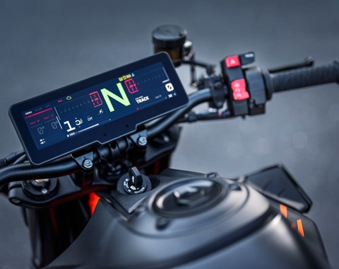 Sportlich, zielgerichtet und extrem verbessert. Die KTM 990 DUKE R sorgt für frischen Wind im Naked-Bike-Angebot der Mittelklasse mit einer maximalen Performance, die dich schneller weiter bringt. Dank der erhöhten Leistung von 130 PS setzt sie neue Maßstäbe, verfügt über eine verbesserte Ergonomie. Hinzu kommen eine verbesserte WP APEX-Federung und ein nie dagewesener elektronischer Funktionsreichtum.